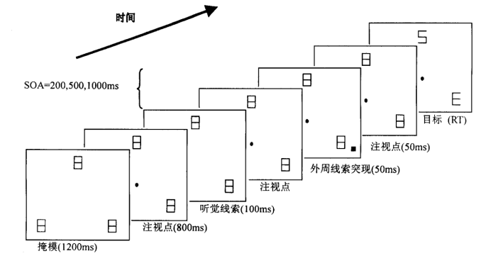(资料来源:赵晨,张侃,杨华海.内源性与外源性选择注意的跨通道比较.心理学报,2001,33(3):219)