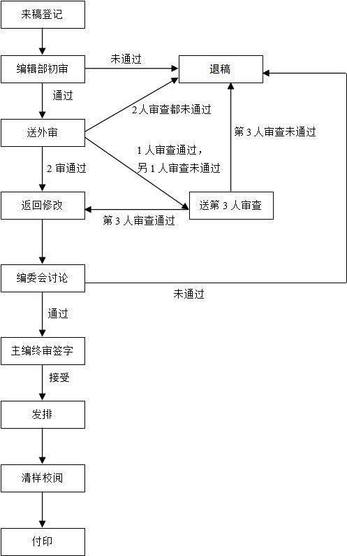 作者投递的论文稿件都需要审查,多数期刊都执行三审制。所谓三审制就是编辑部初审,专家二审,主编终审。但各期刊在执行的时候,形式上可能有所不同。如有的期刊在二审时只请本单位的专家审查,没有送外审;有的期刊在编委会的基础上实行主编终审,有的则不开编委会;也有的期刊把专家外审和编委会讨论合二为一,只开编委会来决定稿件的录用与否。