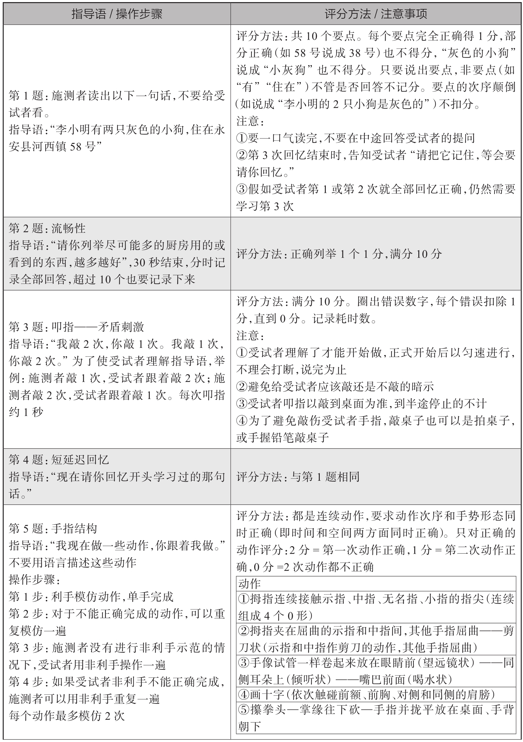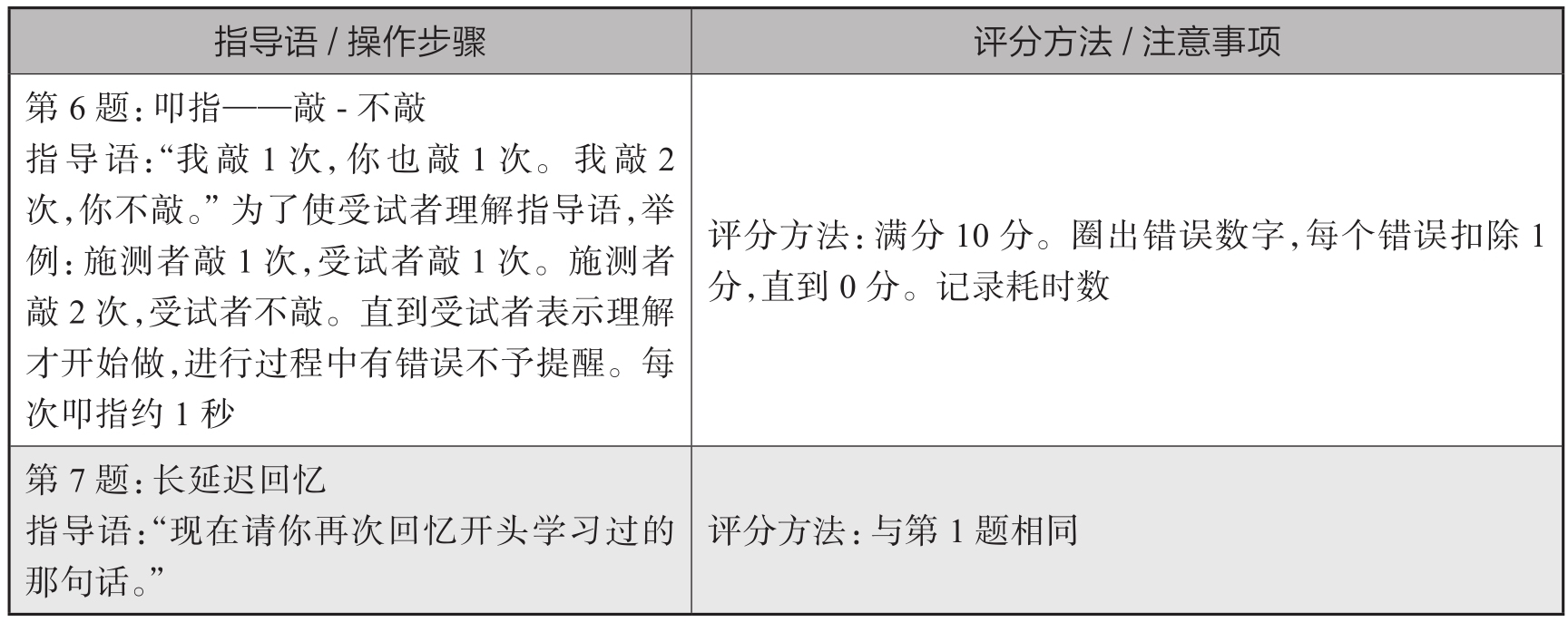 MES满分100分,记忆因子分50分,执行因子分50分,详细评分标准见表2-5-1。
